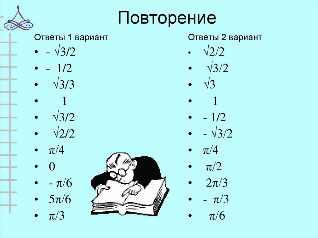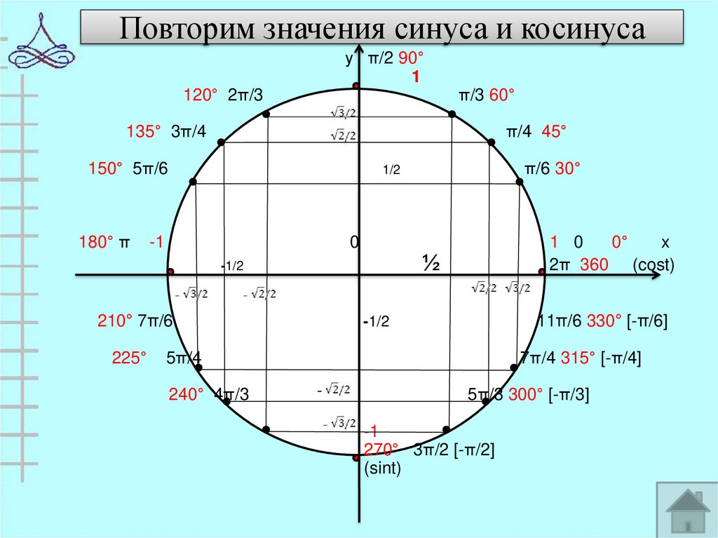 6. Повторим значения синуса и косинуса