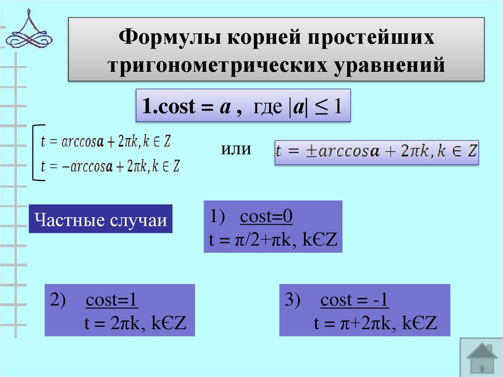 cos t = а.