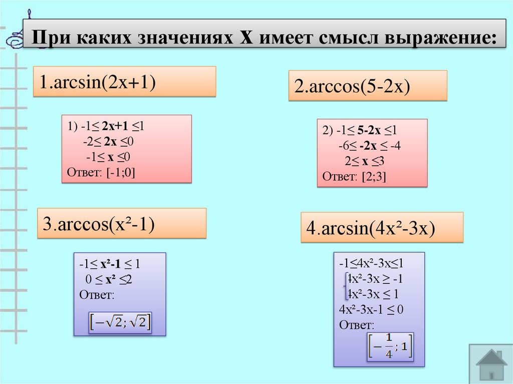 Примеры: 1)arccos(-1)