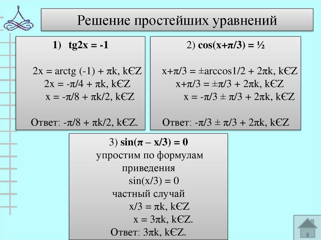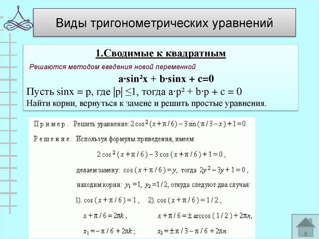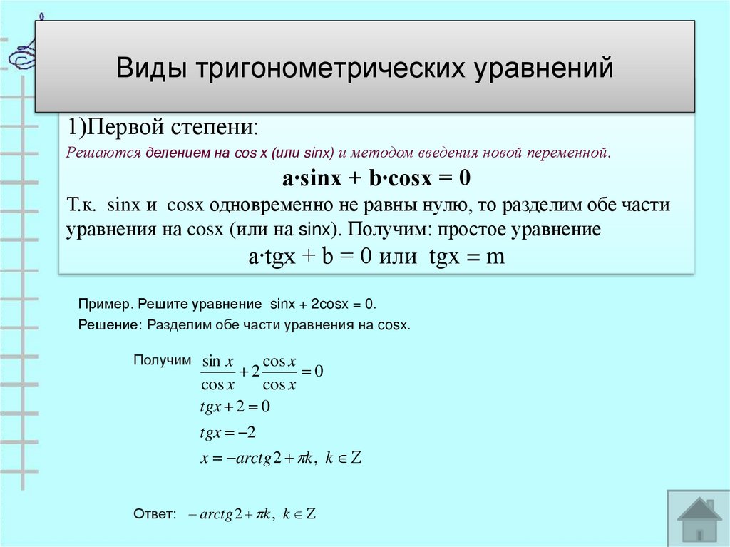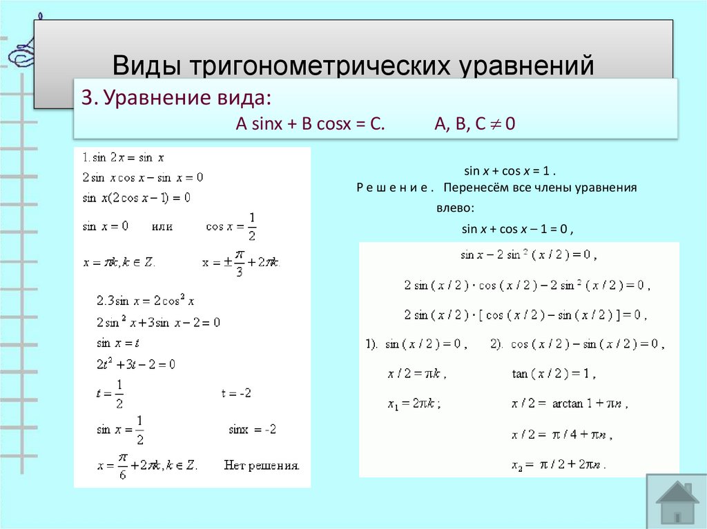 23. Виды тригонометрических уравнений