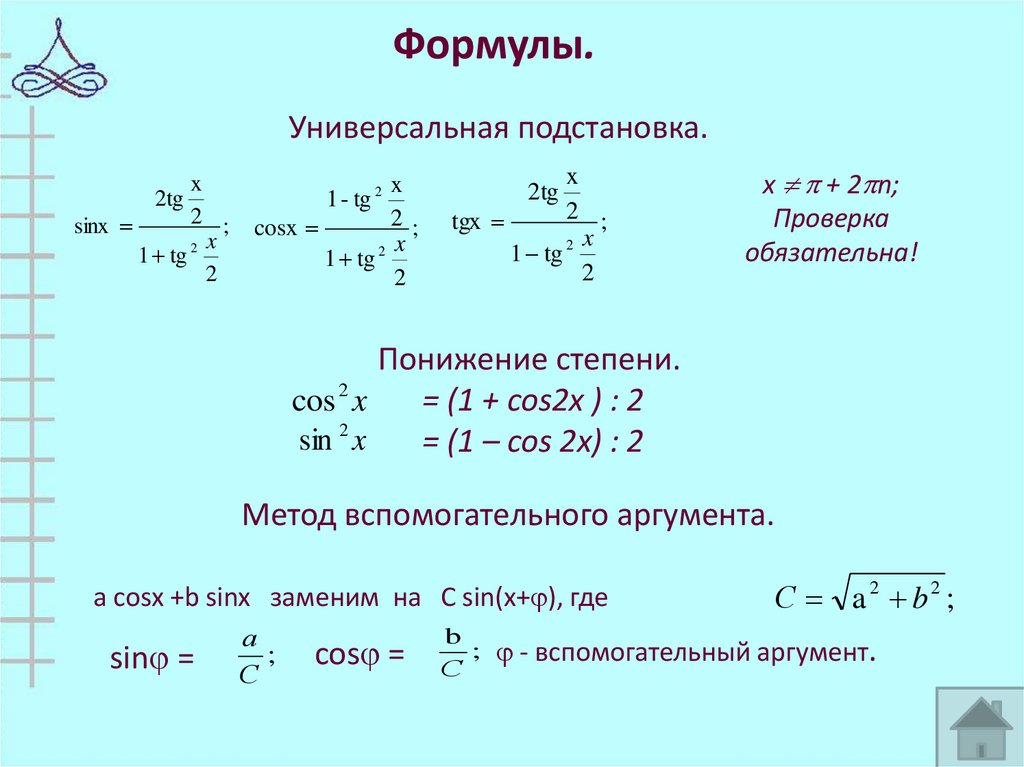опасные формулы (универсальная подстановка).