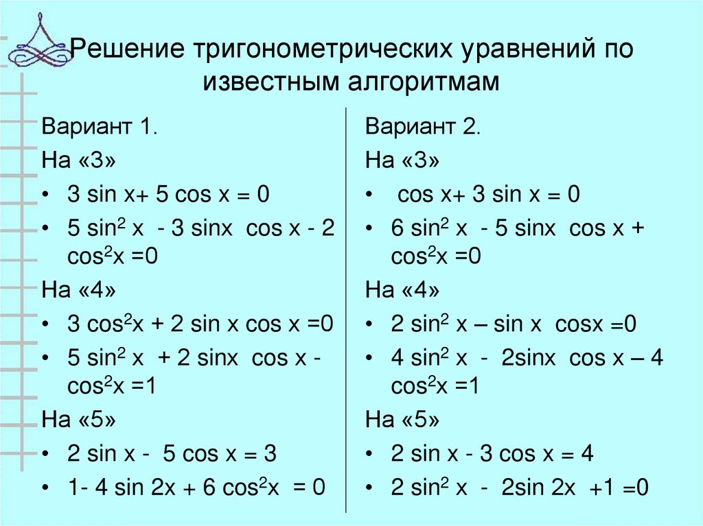 27. Решение тригонометрических уравнений по известным алгоритмам