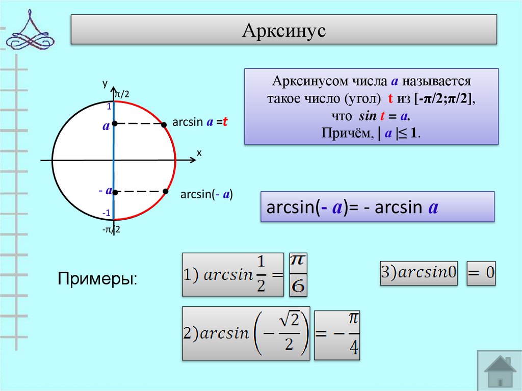 arcsin(- а)= - arcsin а