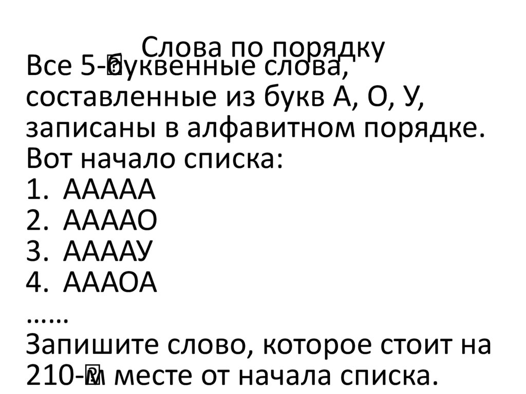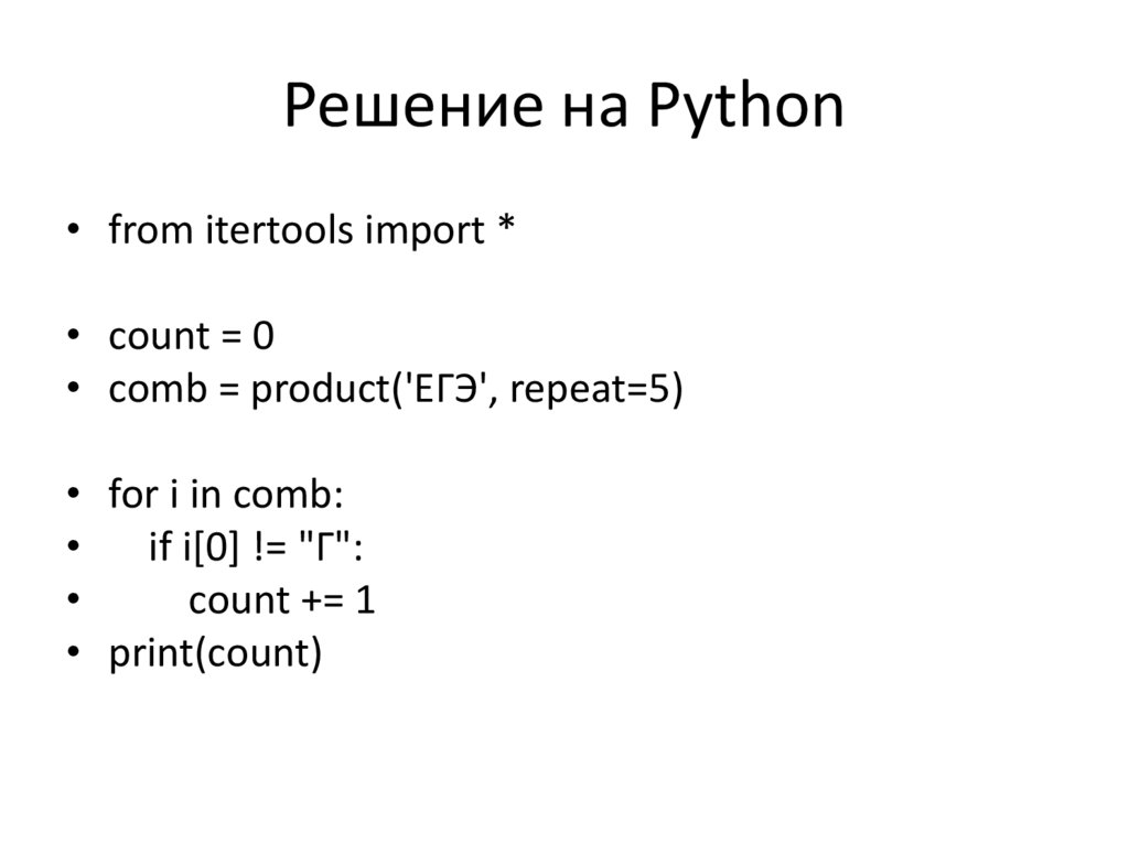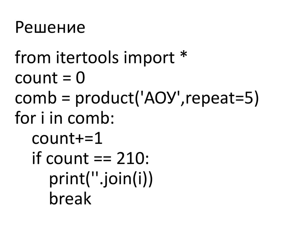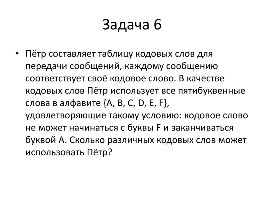 • Сколько слов длины 5, начинающихся с гласнойбуквы, можно составить из букв Е, Г, Э? Каждая