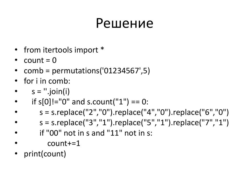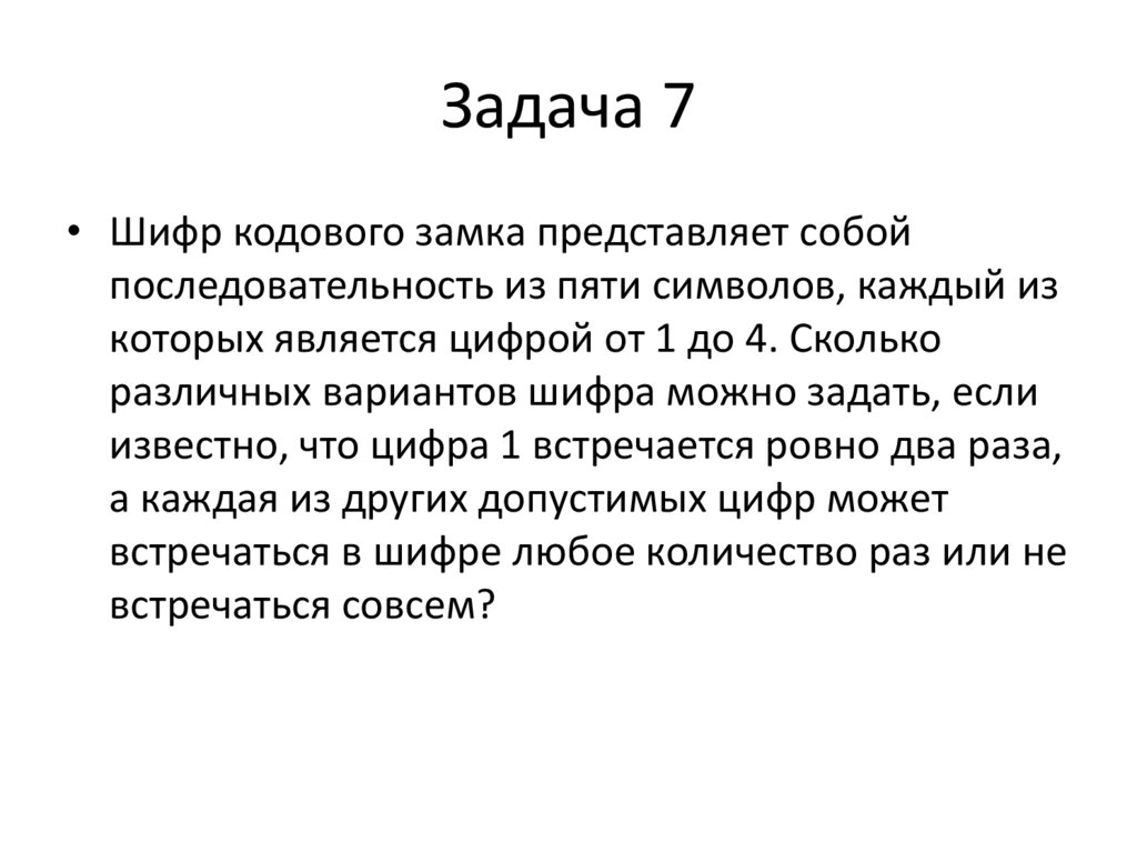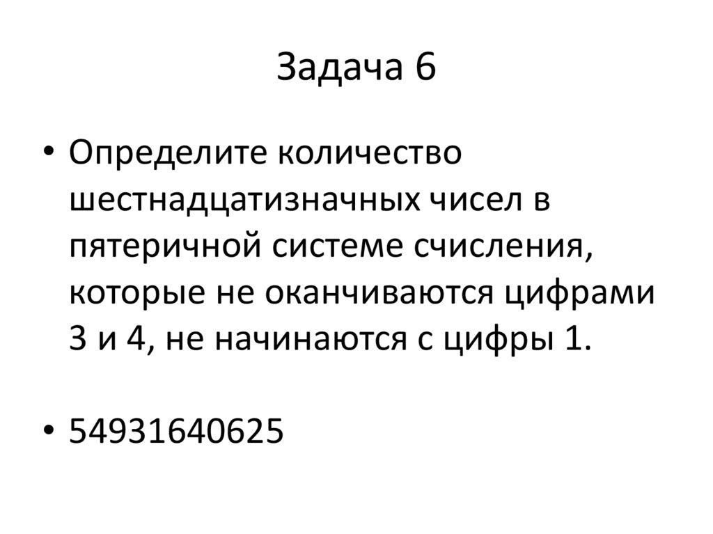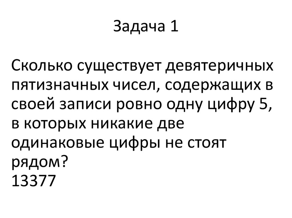 • Сколько существует чисел, восьмеричная записькоторых содержит 5 цифр, причем в записи нет