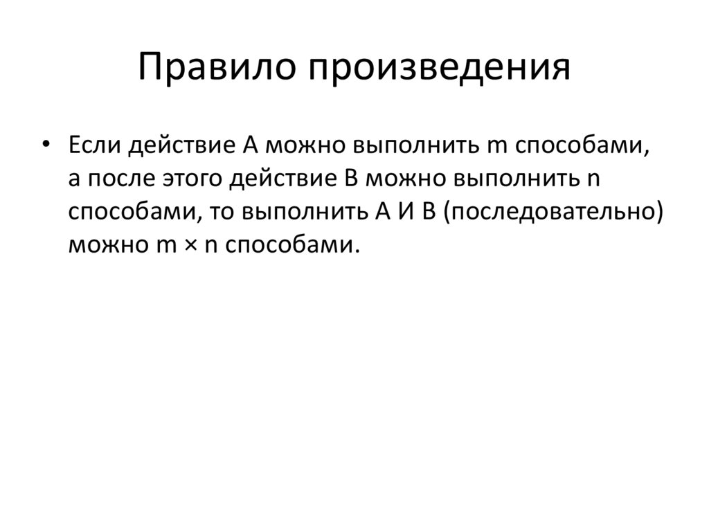 • Если действие A можно выполнить m способами,а после этого действие B можно выполнить n