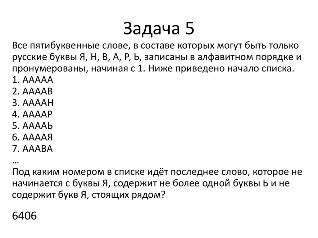 Все пятибуквенные слове, в составе которых могут быть толькорусские буквы Я, Н, В, А, Р, Ь, записаны в алфавитном порядке и