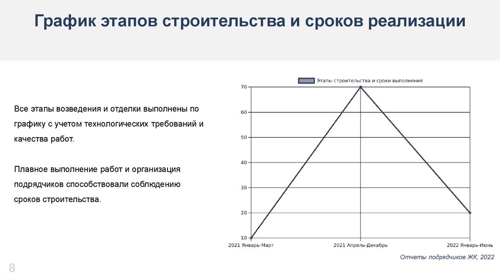 График этапов строительства и сроков реализацииВсе этапы возведения и отделки выполнены по