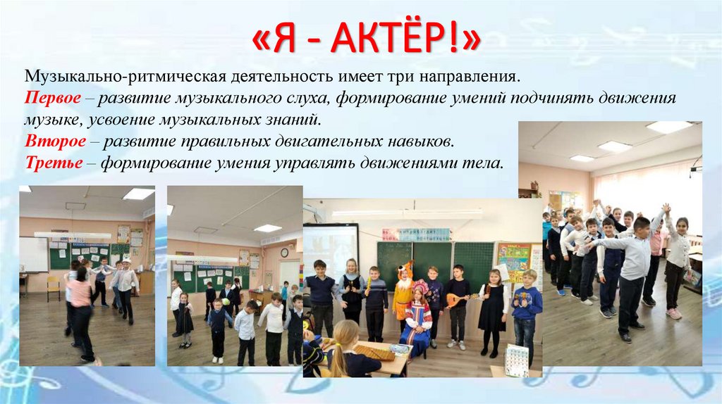 «Я - АКТЁР!»Музыкально-ритмическая деятельность имеет три направления.