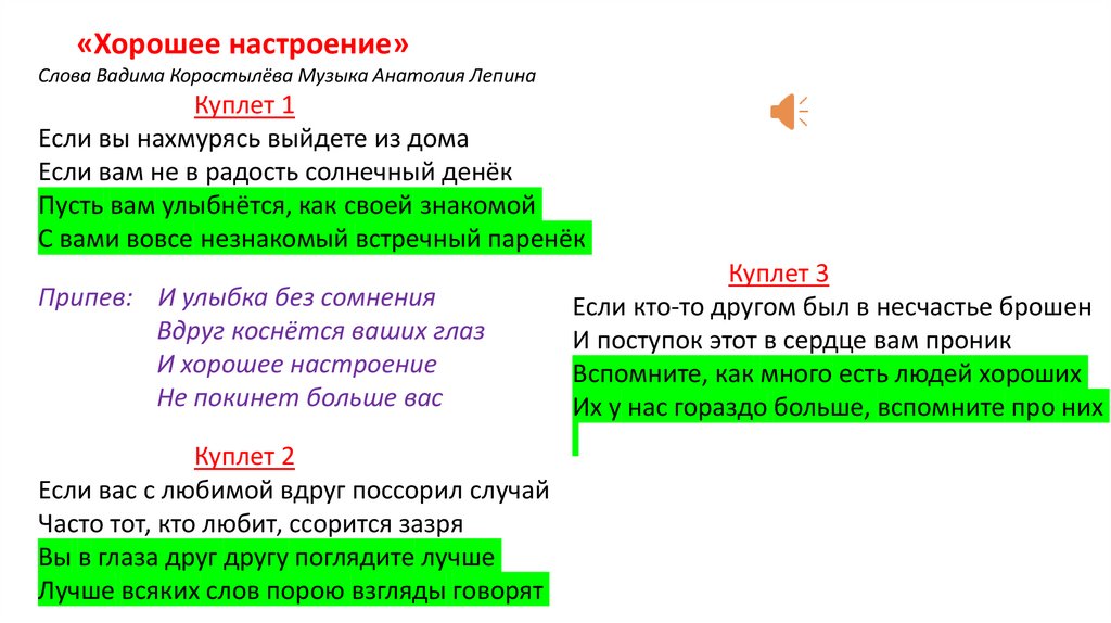 «Хорошее настроение»Слова Вадима Коростылёва Музыка Анатолия Лепина