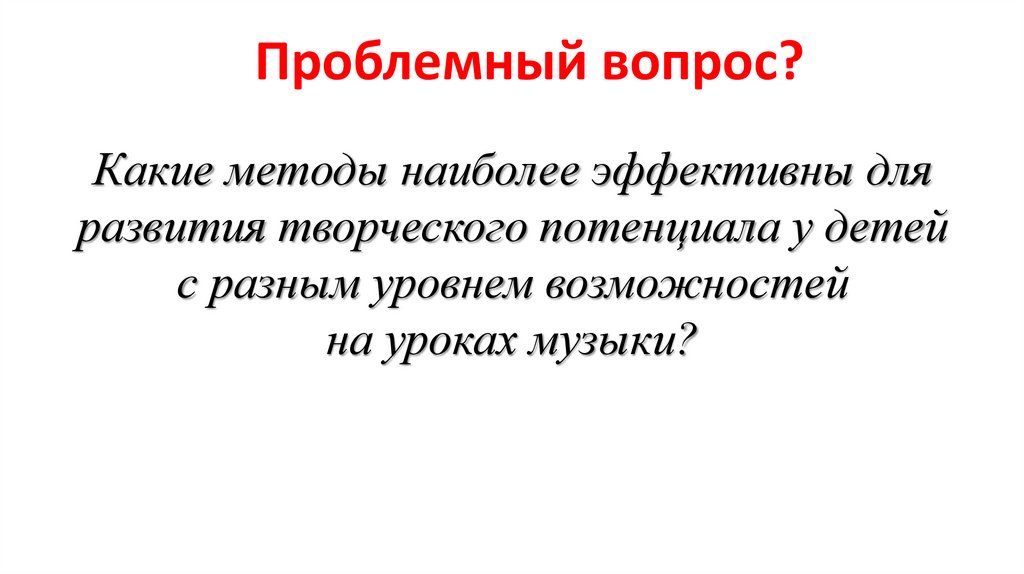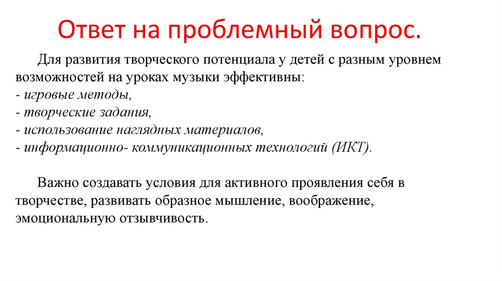 Ответ на проблемный вопрос.Для развития творческого потенциала у детей с разным уровнем