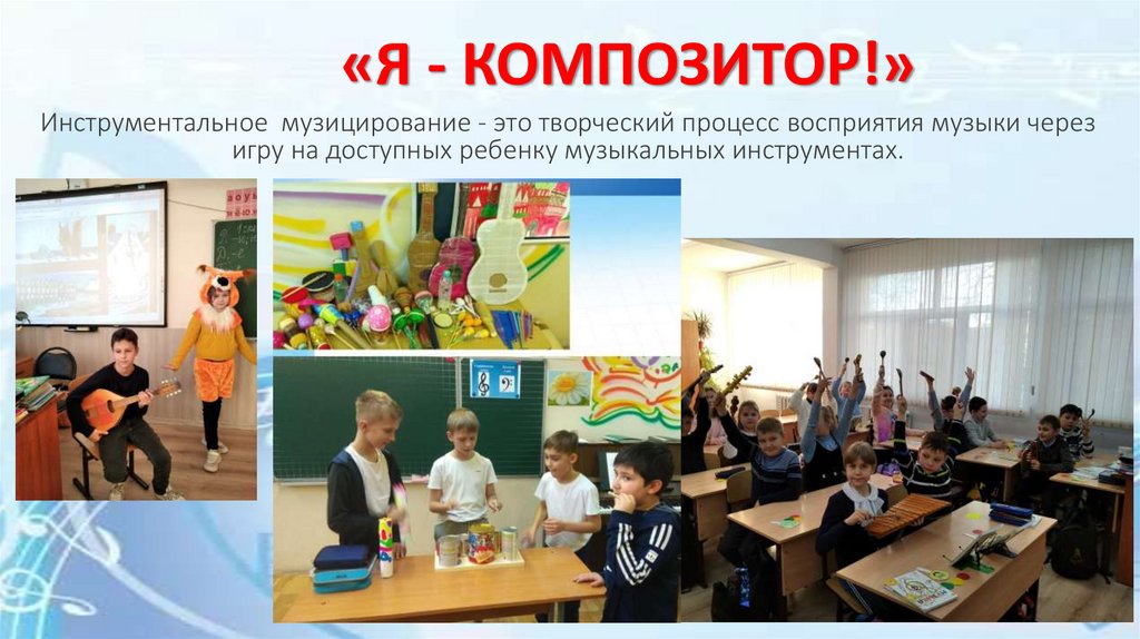 «Я - КОМПОЗИТОР!»Инструментальное музицирование - это творческий процесс восприятия музыки через