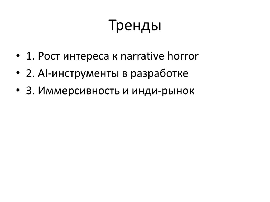 Тренды• 1. Рост интереса к narrative horror