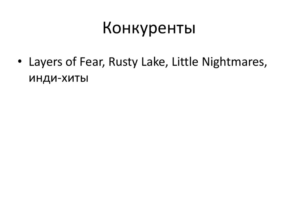 Конкуренты• Layers of Fear, Rusty Lake, Little Nightmares,