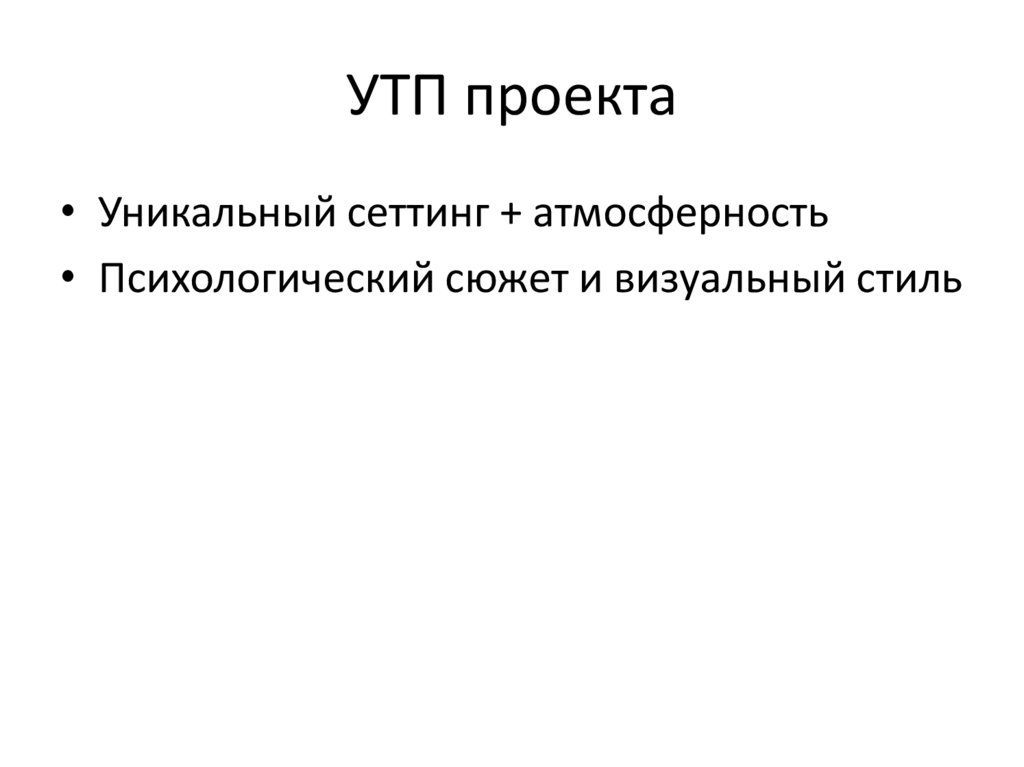 УТП проекта• Уникальный сеттинг + атмосферность
