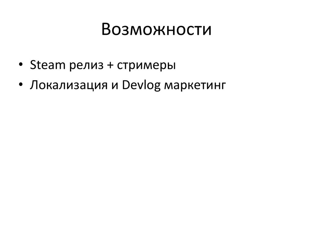 Возможности• Steam релиз + стримеры
