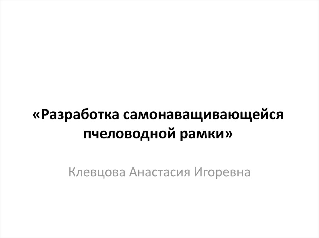 1. «Разработка самонаващивающейся пчеловодной рамки»