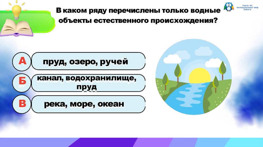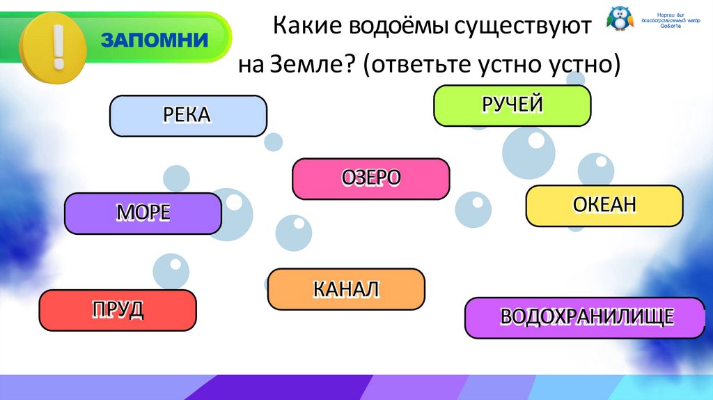2. Какие водоёмы существуют на Земле? (ответьте устно устно)