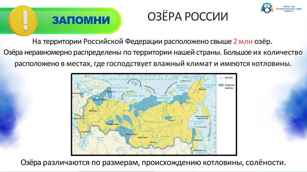 Озёра неравномерно распределены по территории нашей страны. Большое их количество