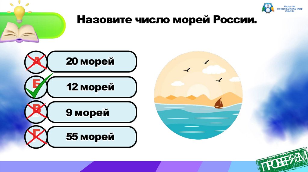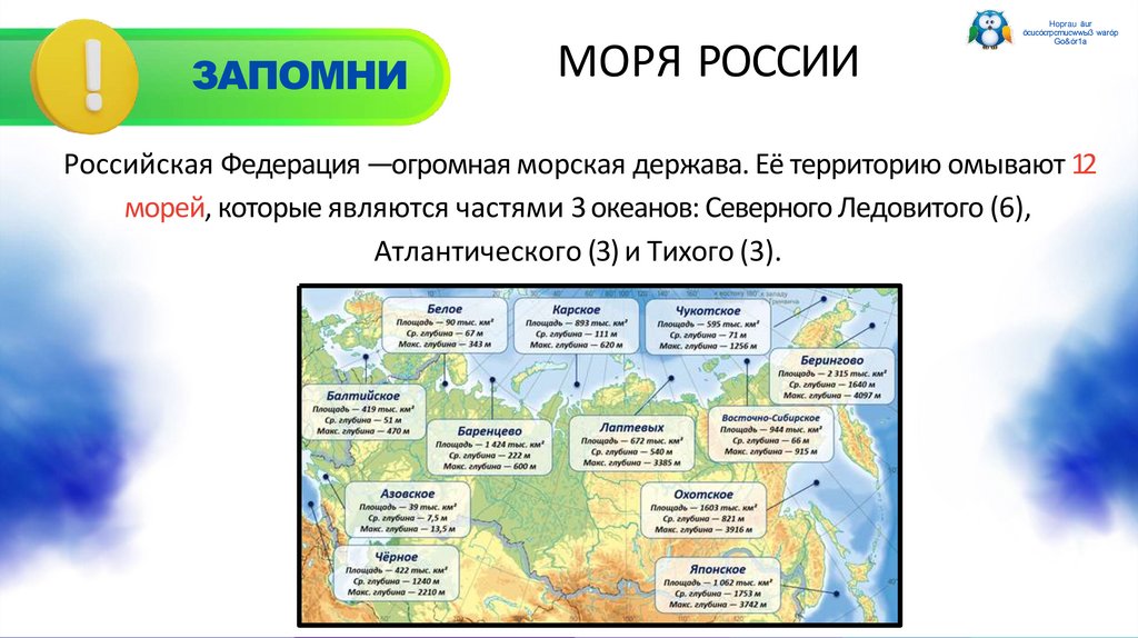 Российская Федерация —огромная морская держава. Её территорию омывают 12