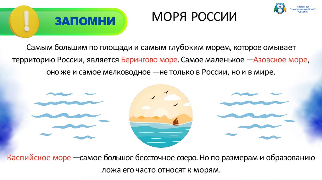 территорию России, является Берингово море. Самое маленькое —Азовское море,