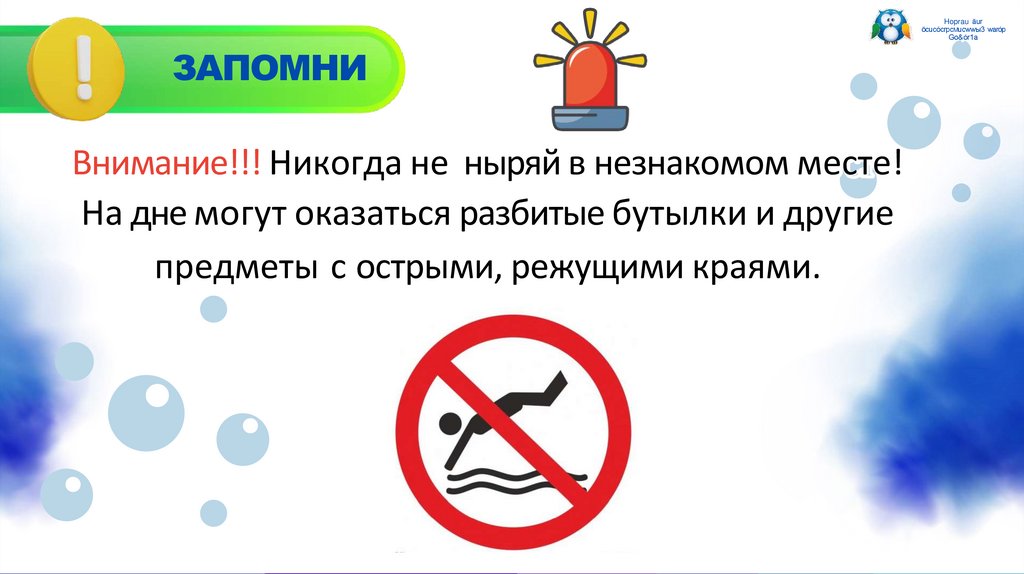 Внимание!!! Никогда не ныряй в незнакомом месте!На дне могут оказаться разбитые бутылки и другие