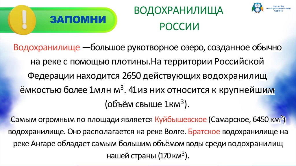9. ВОДОХРАНИЛИЩА РОССИИ