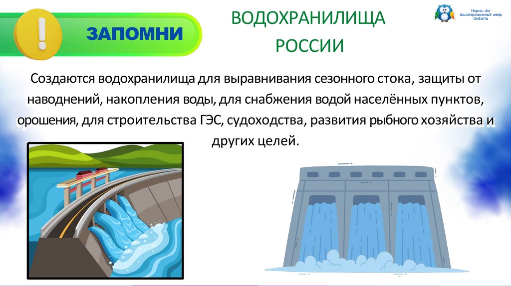 наводнений, накопления воды, для снабжения водой населённых пунктов,