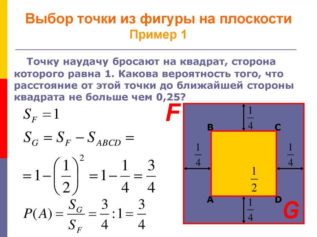 2. Выбор точки из фигуры на плоскости Определение геометрической вероятности