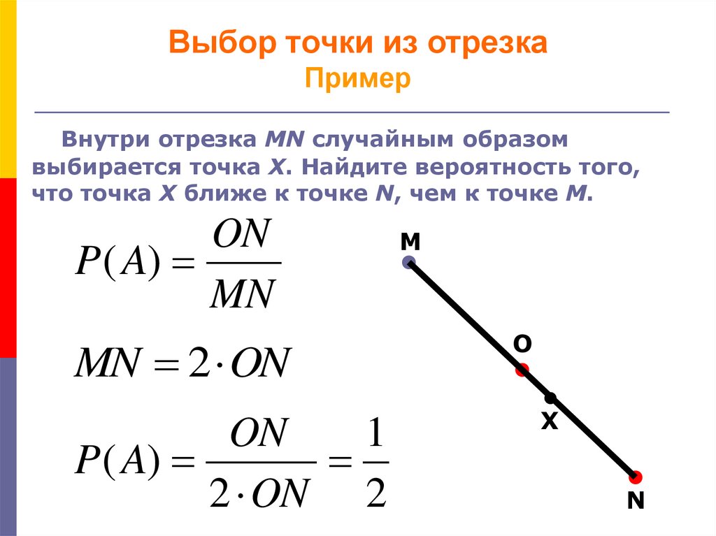 Внутри отрезка MN случайным образомвыбирается точка X. Найдите вероятность того,
