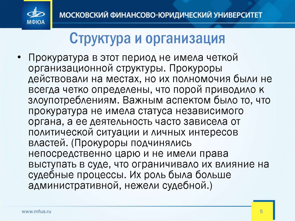• Прокуратура в этот период не имела четкойорганизационной структуры. Прокуроры