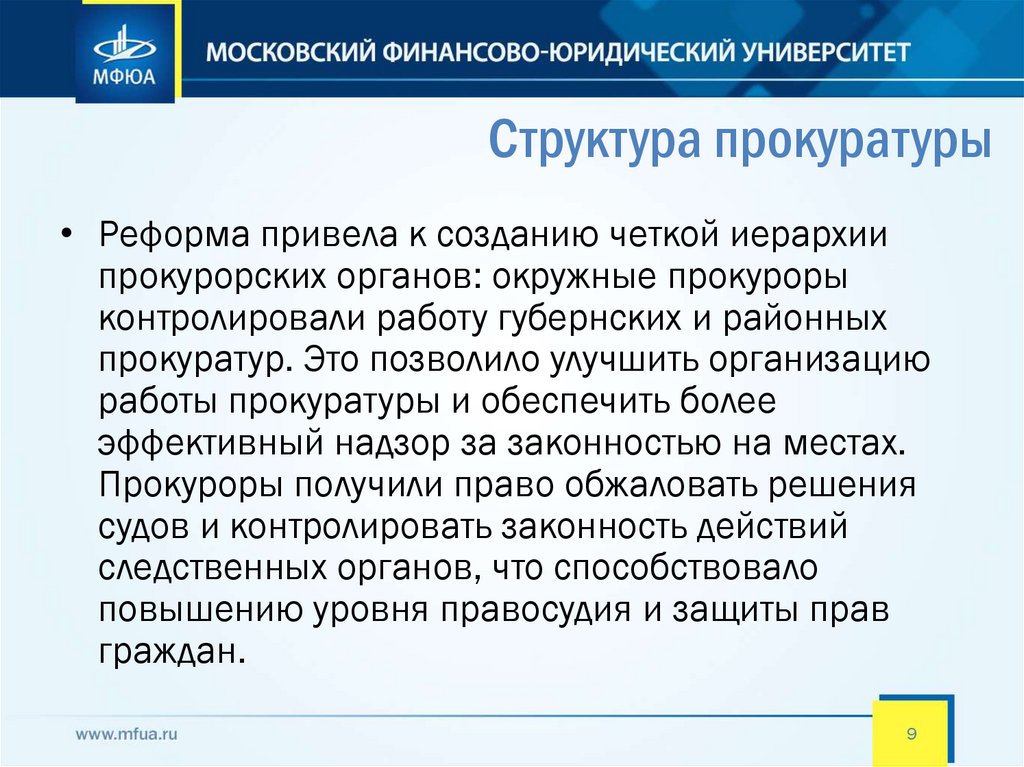 • Реформа привела к созданию четкой иерархиипрокурорских органов: окружные прокуроры