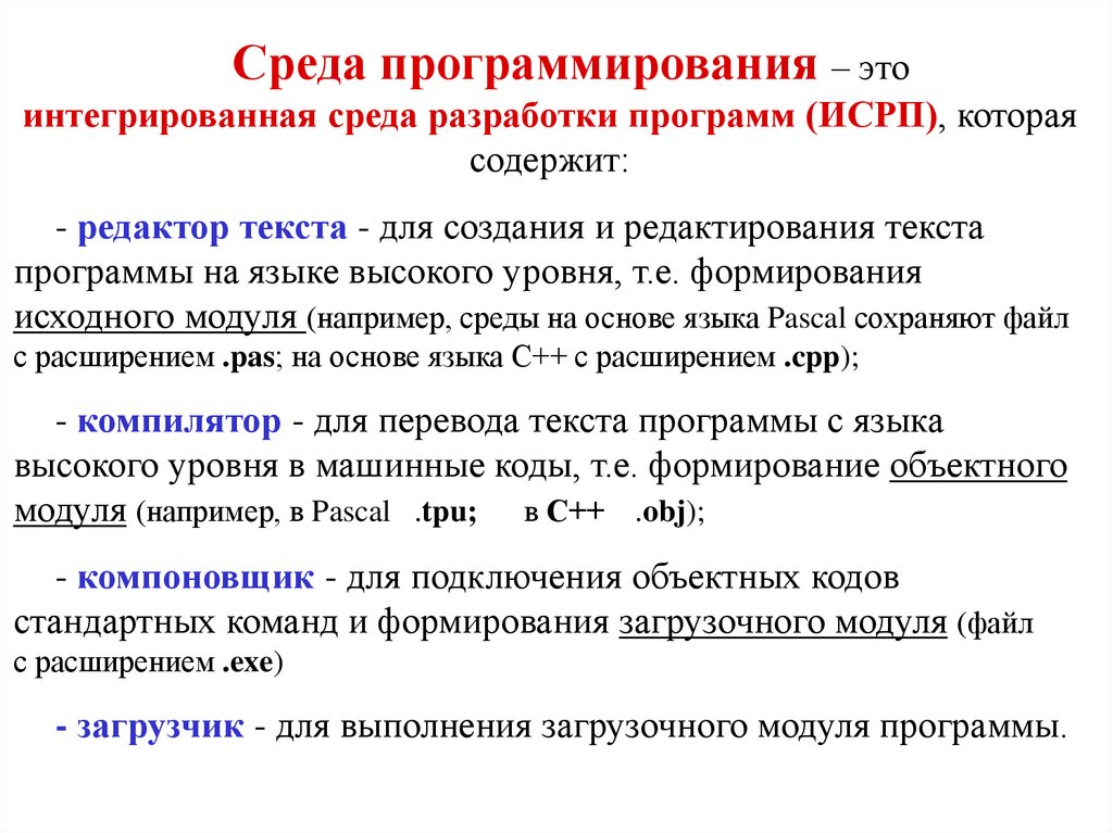 Среда программирования – этоинтегрированная среда разработки программ (ИСРП), которая