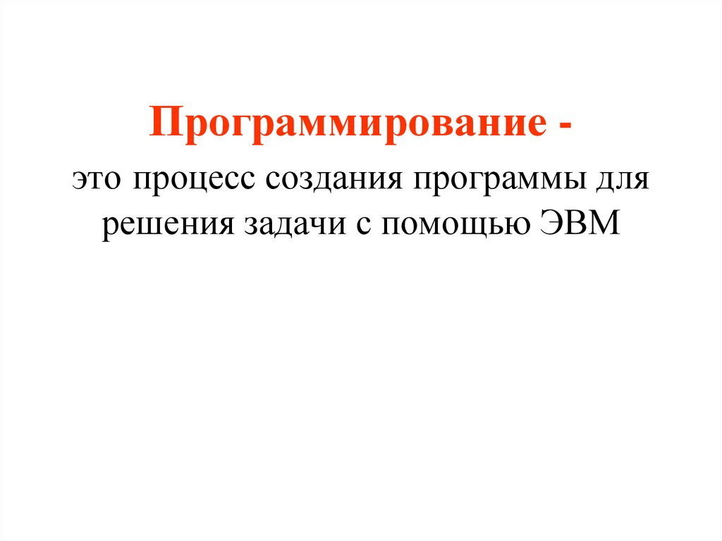 Программирование это процесс создания программы длярешения задачи с помощью ЭВМ