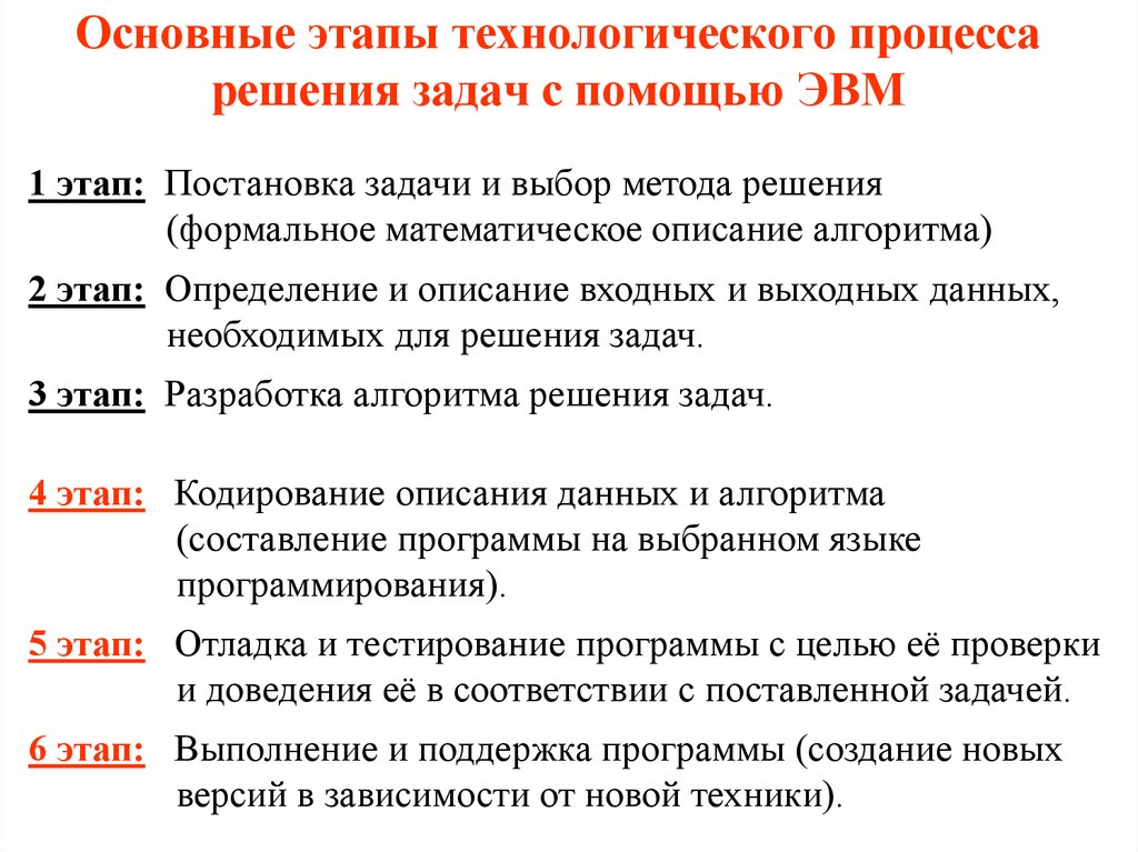 4. Основные этапы технологического процесса решения задач с помощью ЭВМ