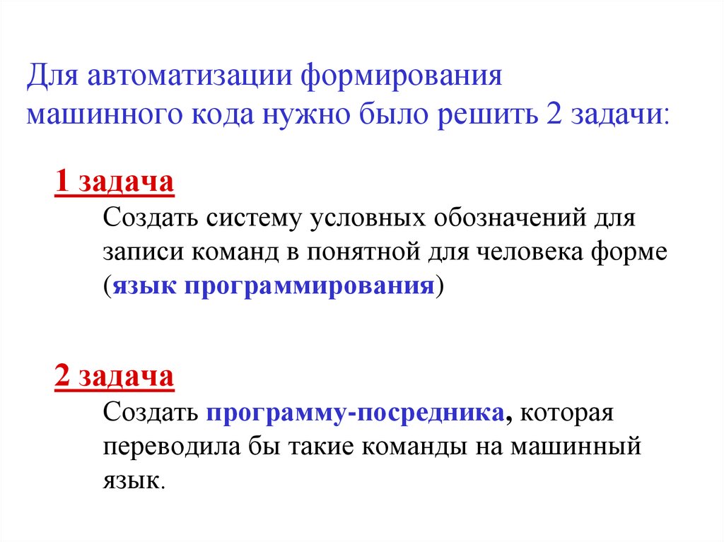 6. Для автоматизации формирования машинного кода нужно было решить 2 задачи: