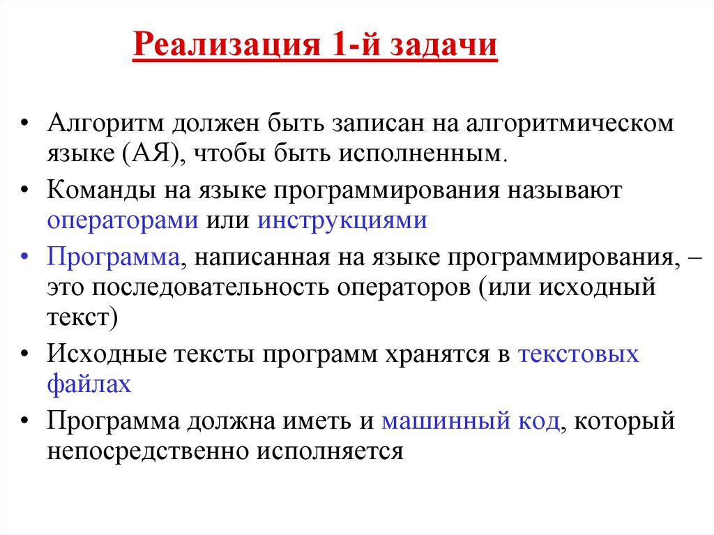 Реализация 1-й задачи• Алгоритм должен быть записан на алгоритмическом