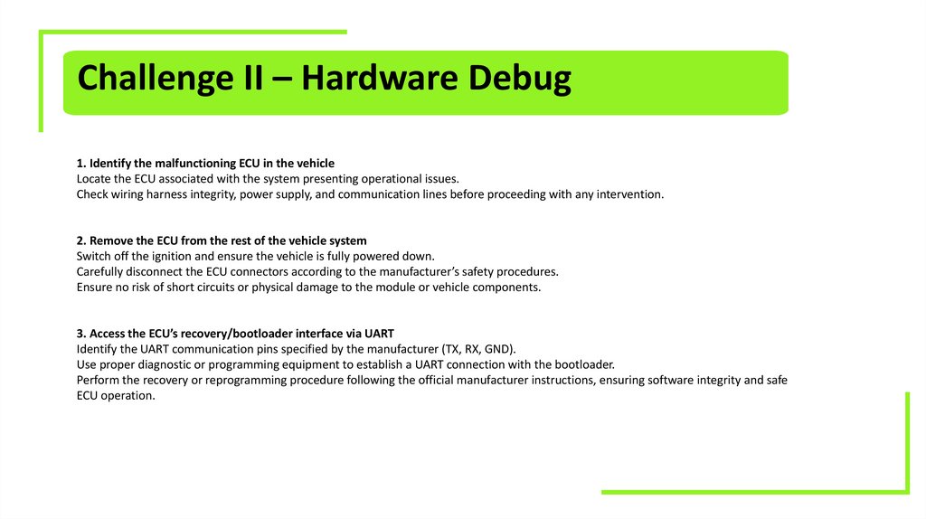 • ECU hardware experience, including mounting, dismounting, and handling vehicle wiring