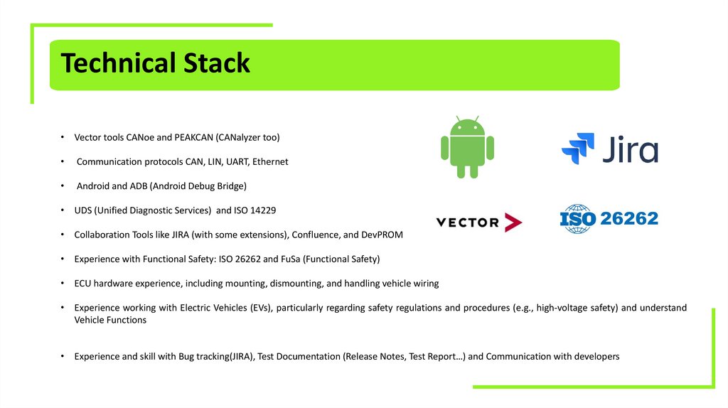 Technical Stack• Vector tools CANoe and PEAKCAN (CANalyzer too)