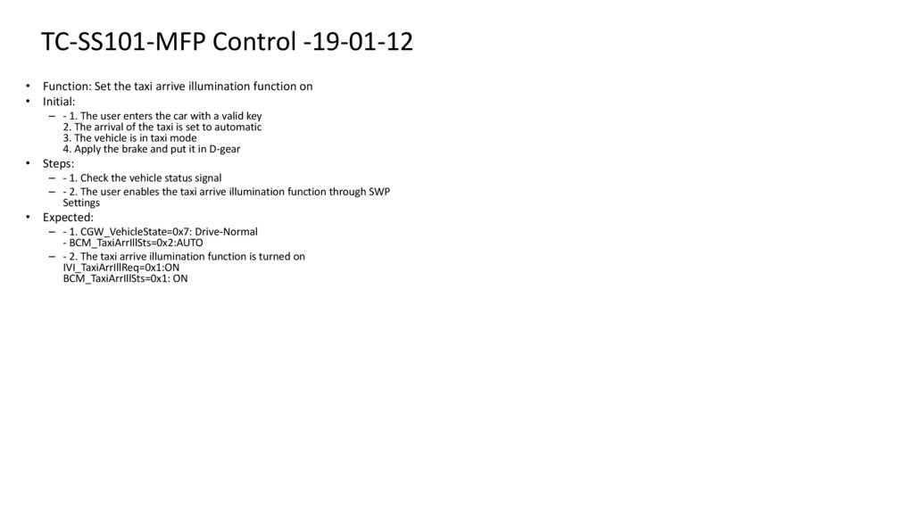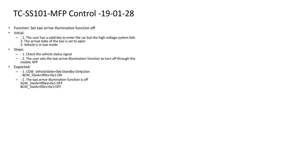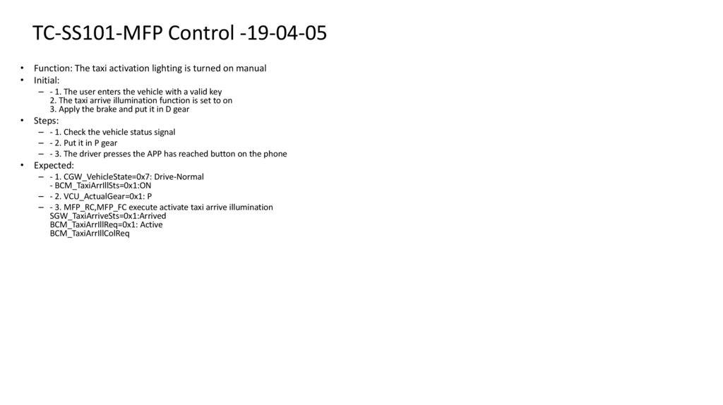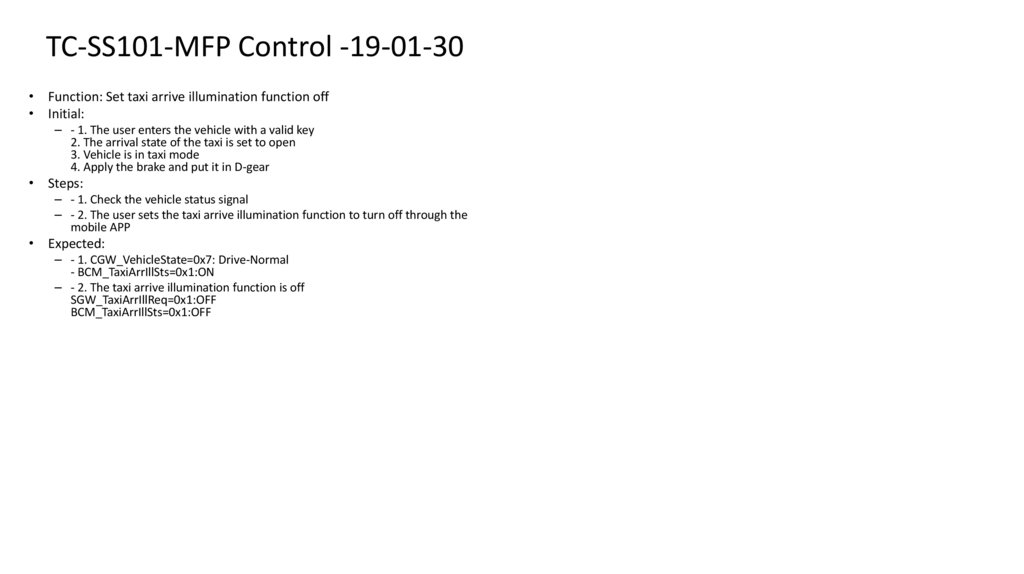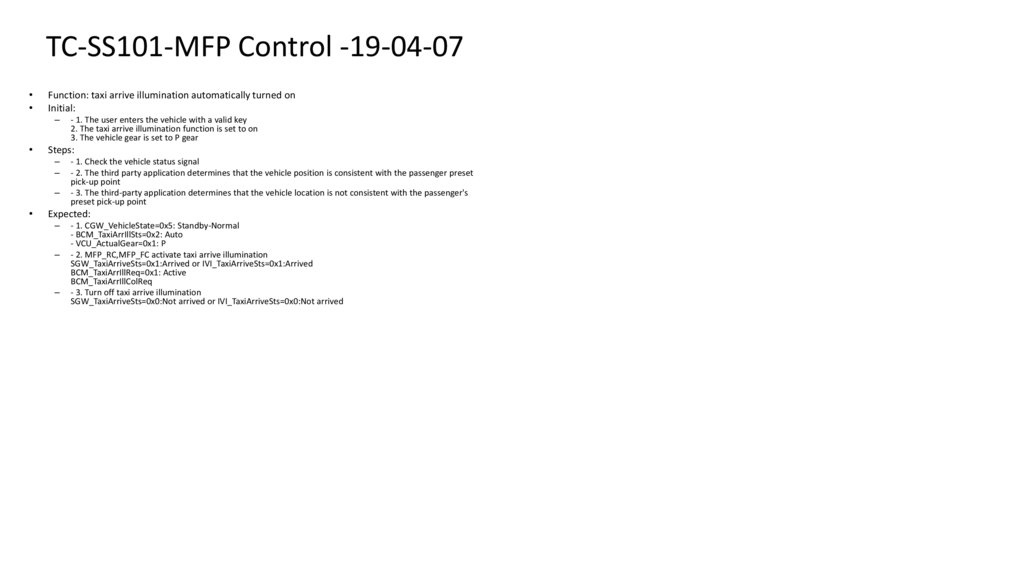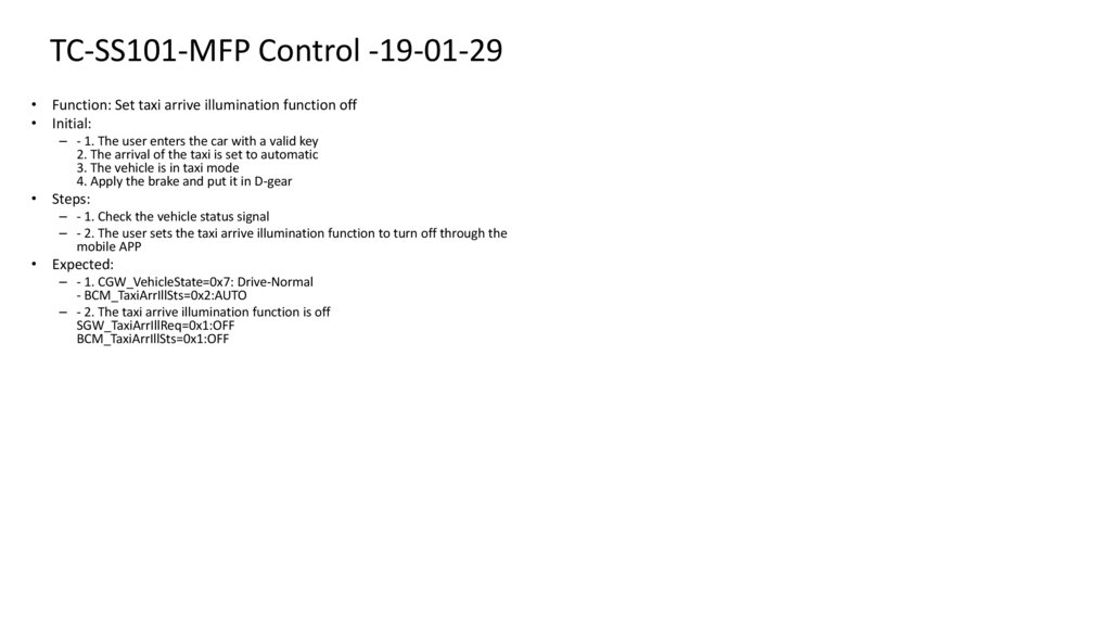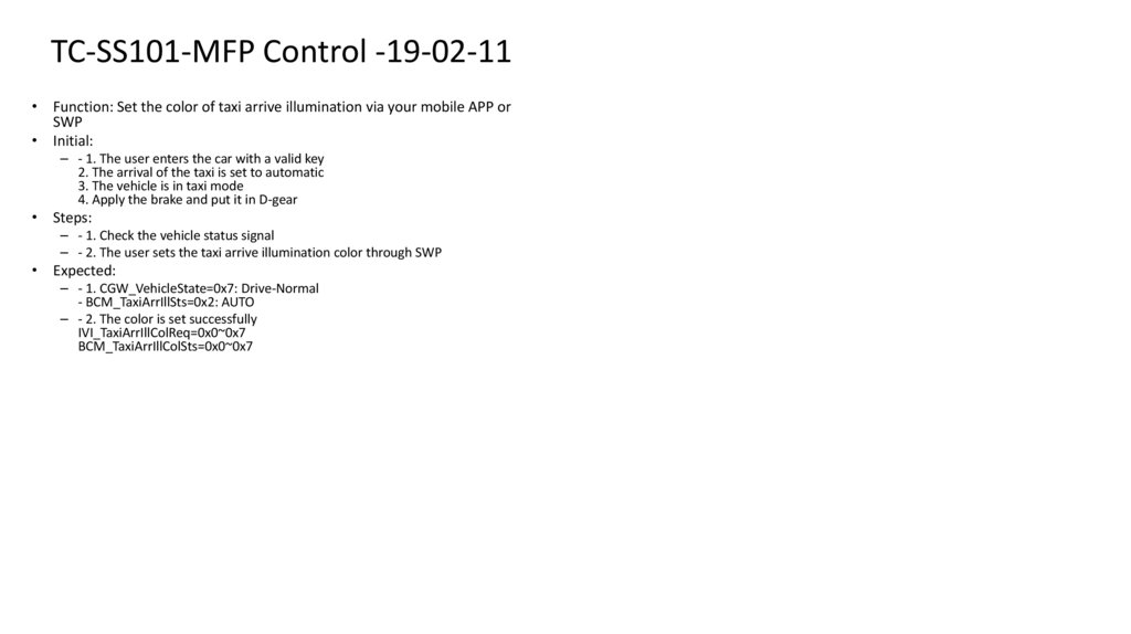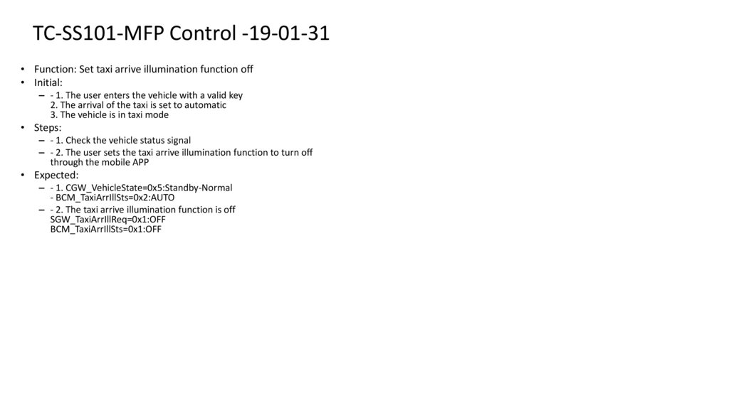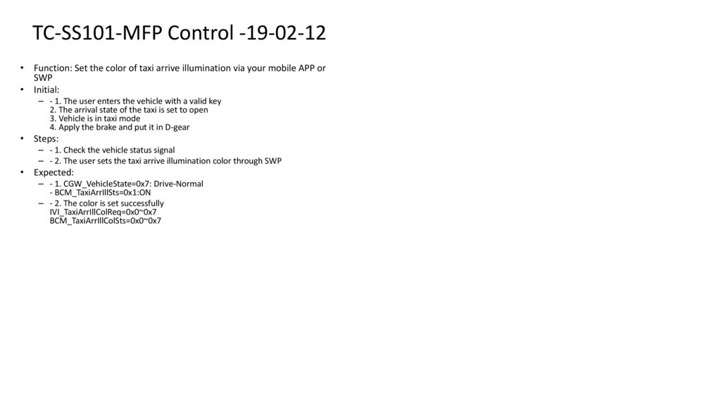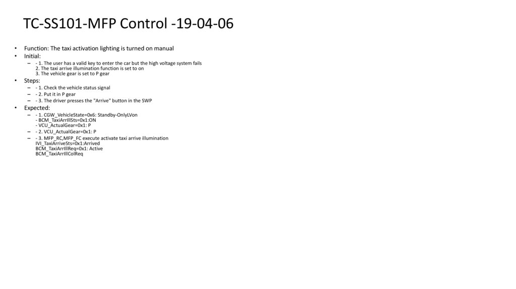 – - 3. MFP_RC,MFP_FC execute activate taxi arrive illumination