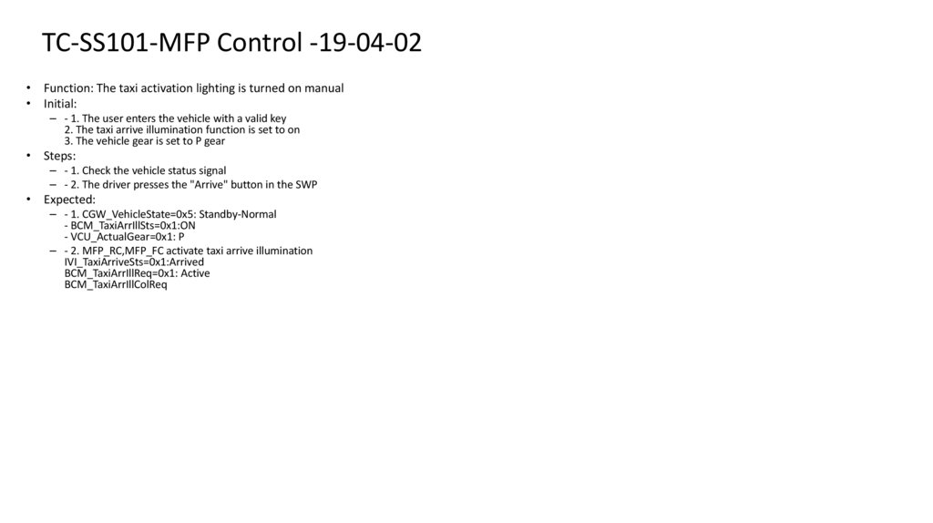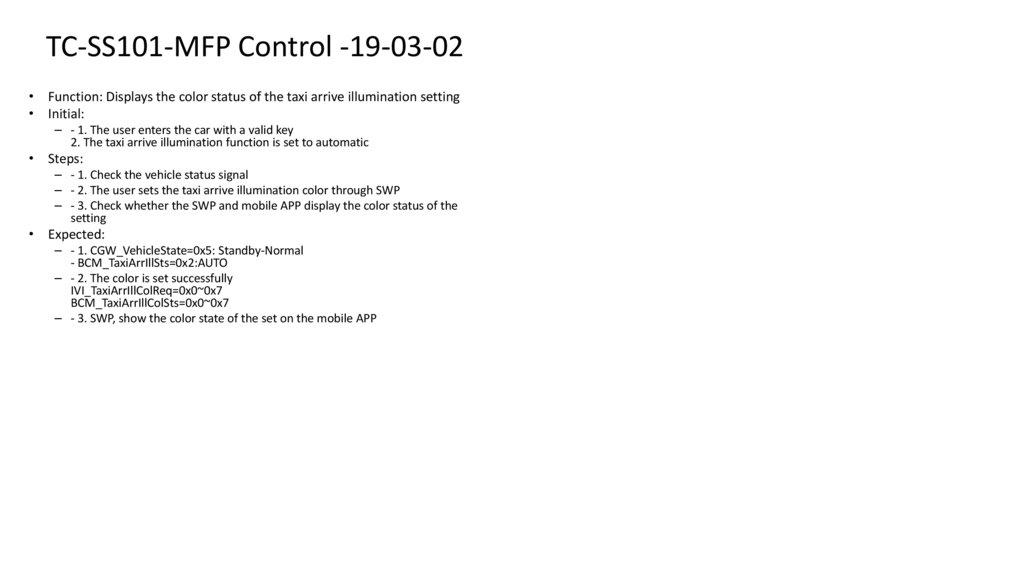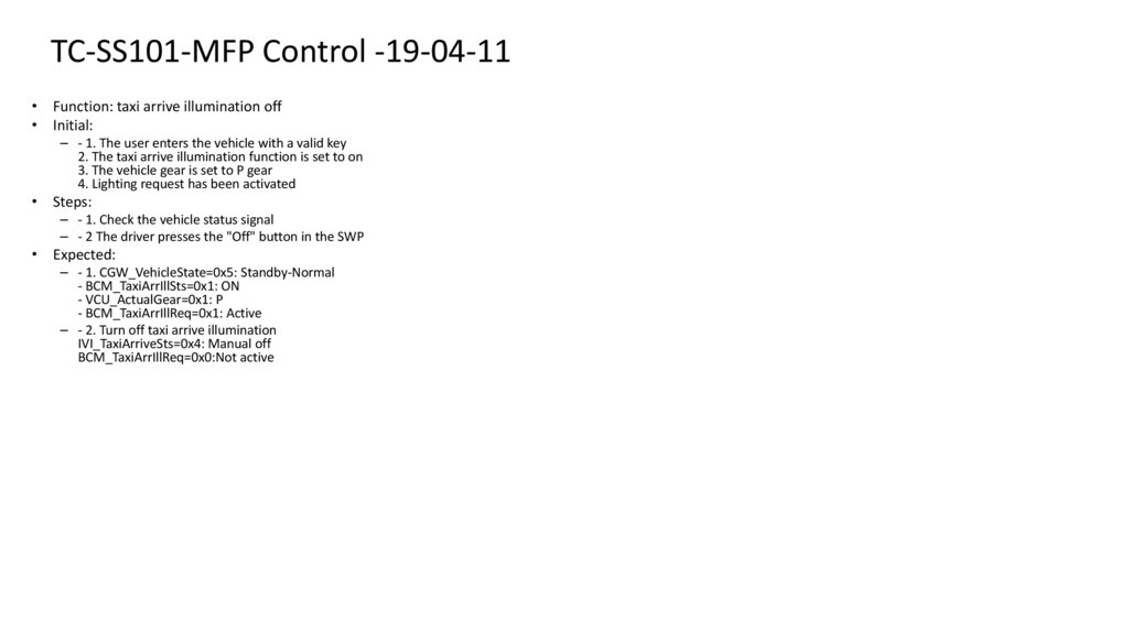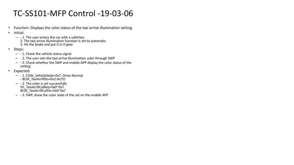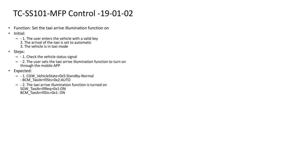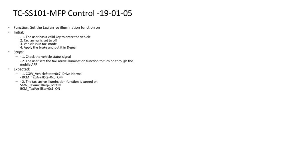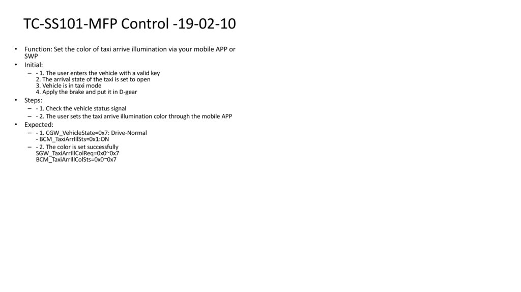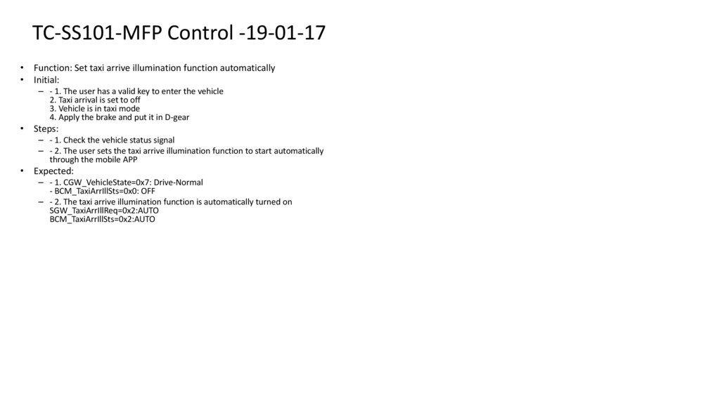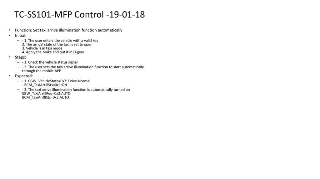 – - 3. MFP_RC,MFP_FC execute activate taxi arrive illumination