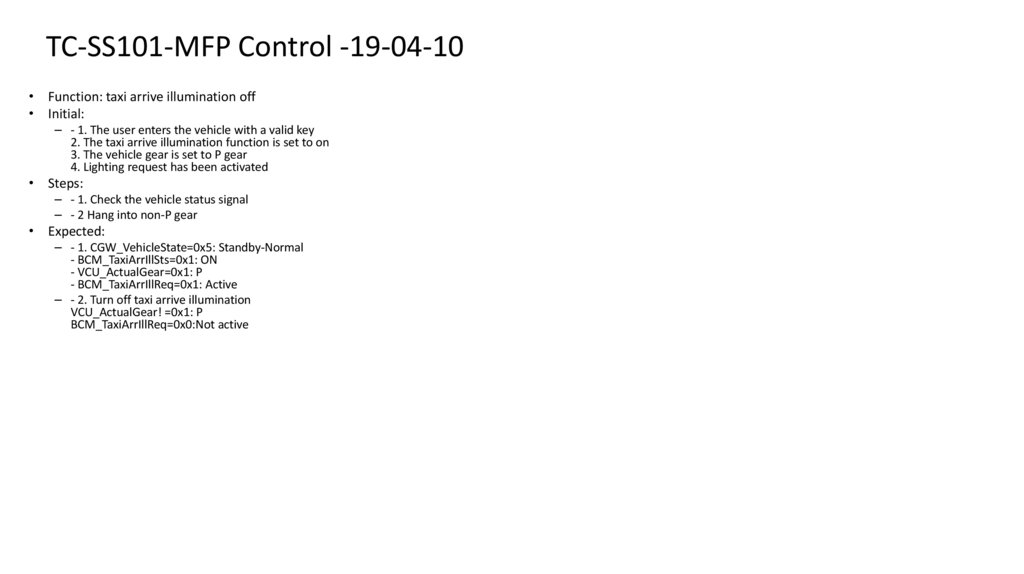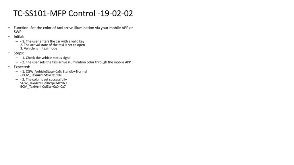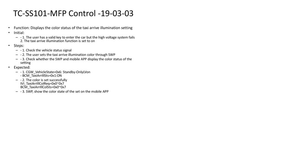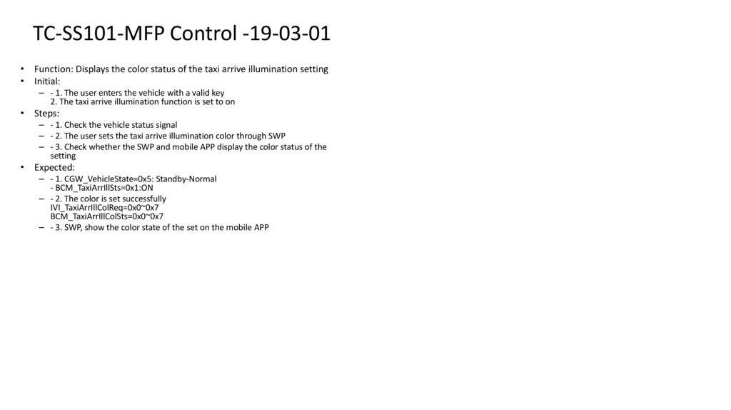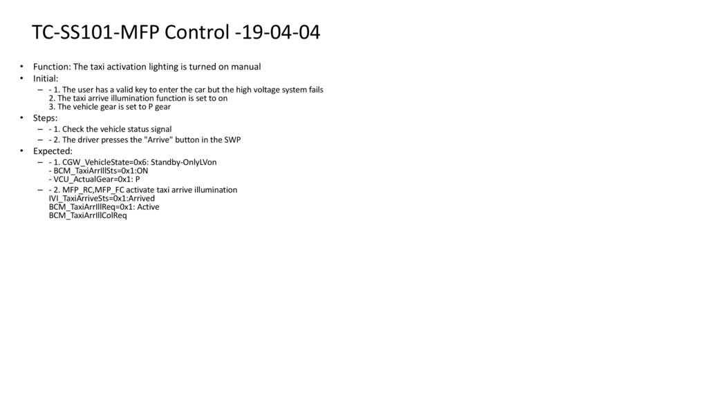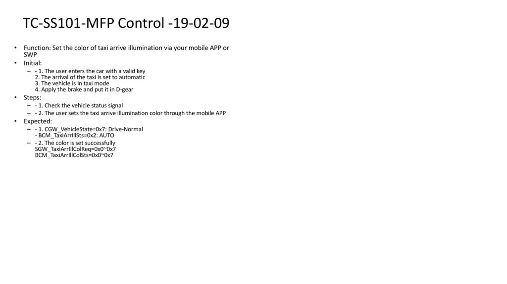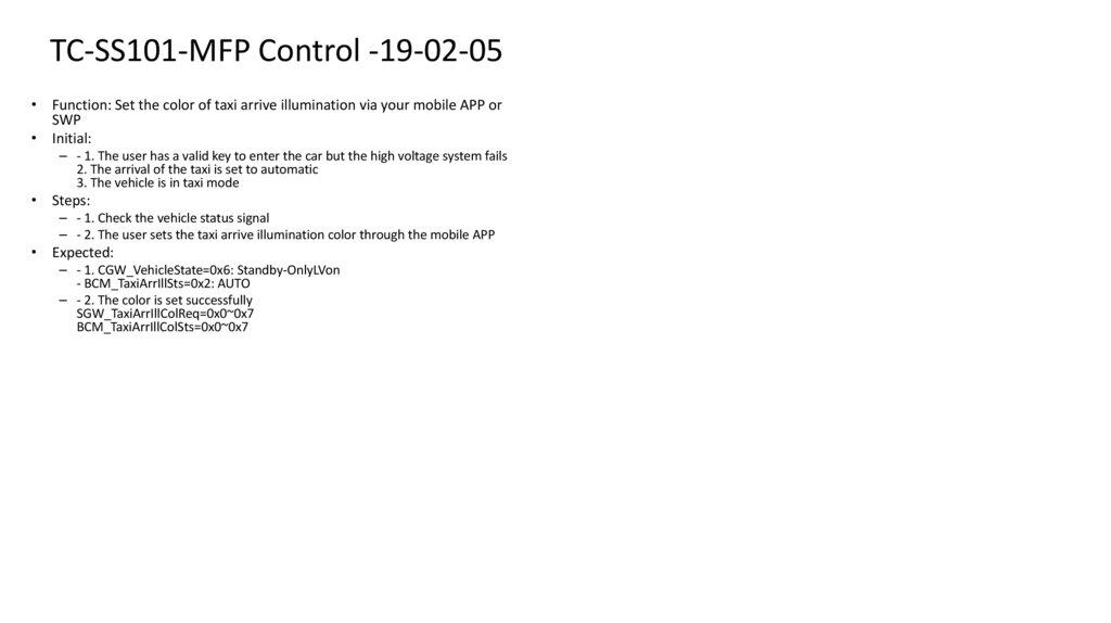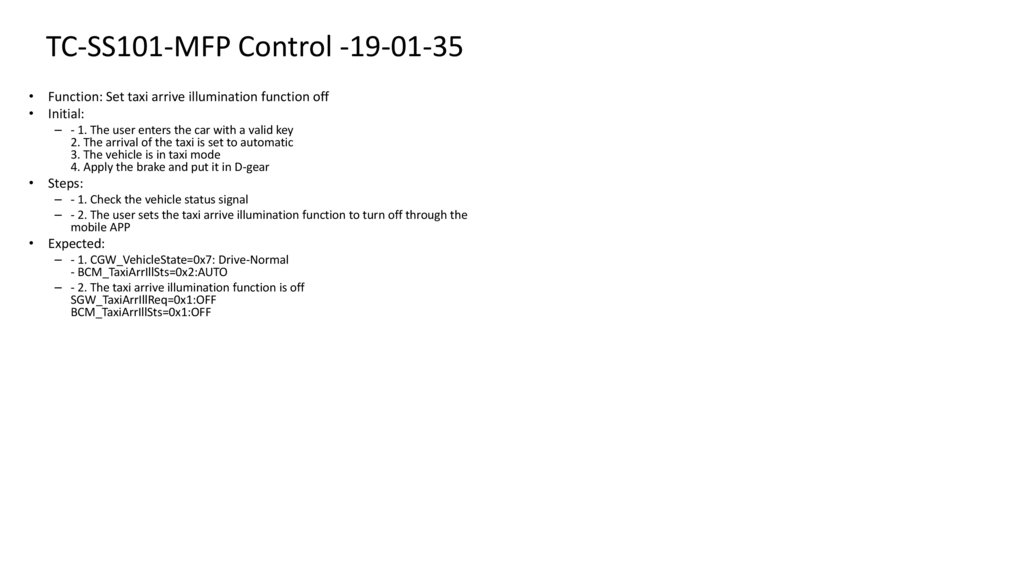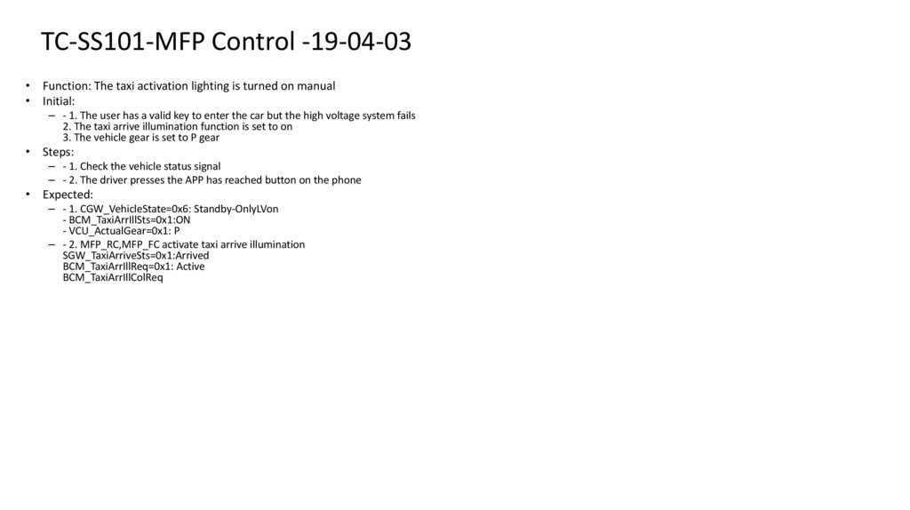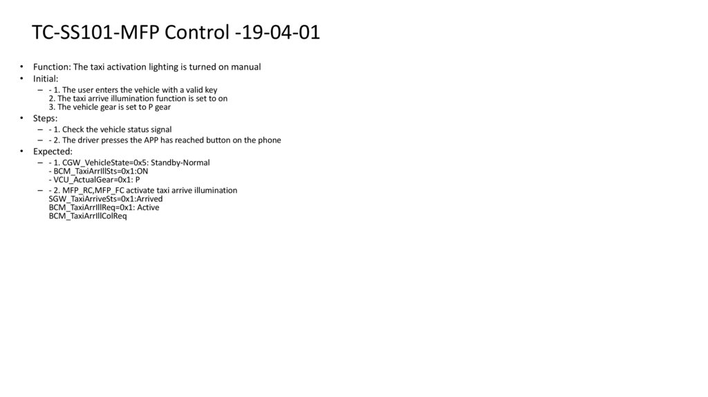 – - 3. MFP_RC,MFP_FC execute activate taxi arrive illumination