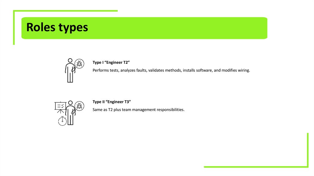 Performs tests, analyzes faults, validates methods, installs software, and modifies wiring.