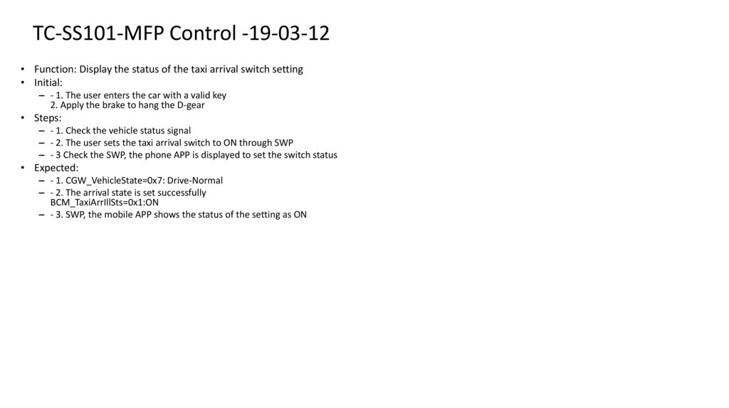 – - 2. MFP_RC,MFP_FC activate taxi arrive illumination