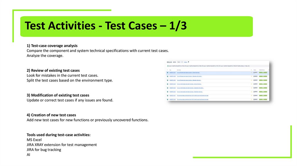 Test Activities - Test Cases – 1/31) Test-case coverage analysis