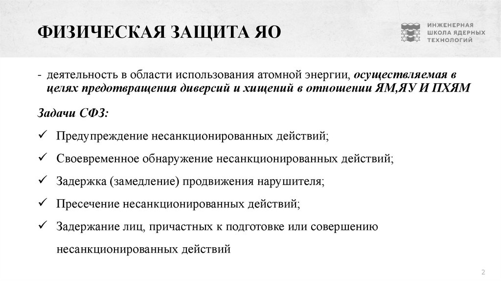 2. ФИЗИЧЕСКАЯ ЗАЩИТА ЯО