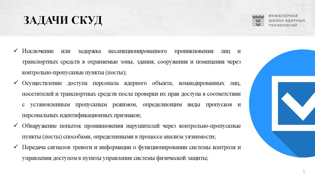 ЗАДАЧИ СКУДОбнаружение попыток несанкционированного проноса и провоза через контрольнопропускные пункты (посты) (в которых это предусмотрено проектом комплекса