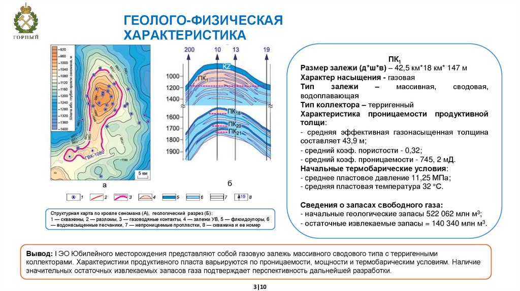 Вывод: I ЭО Юбилейного месторождения представляют собой газовую залежь массивного сводового типа с терригенными