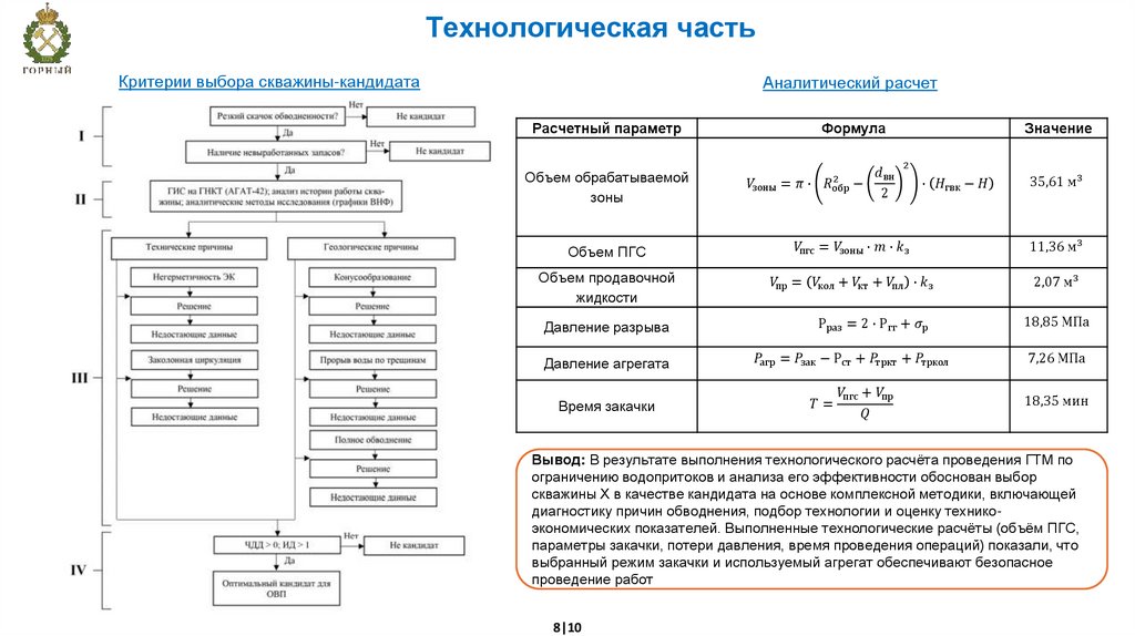 Технологическая частьКритерии выбора скважины-кандидата