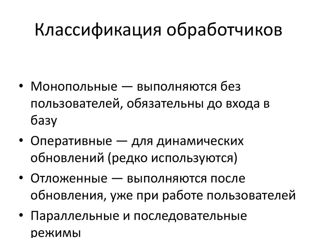 Классификация обработчиков• Монопольные — выполняются без